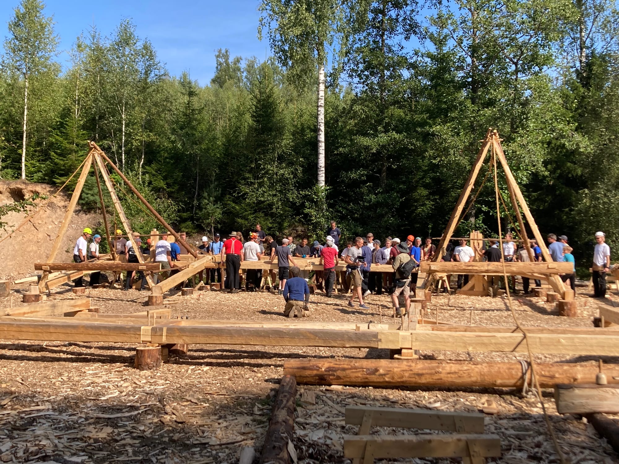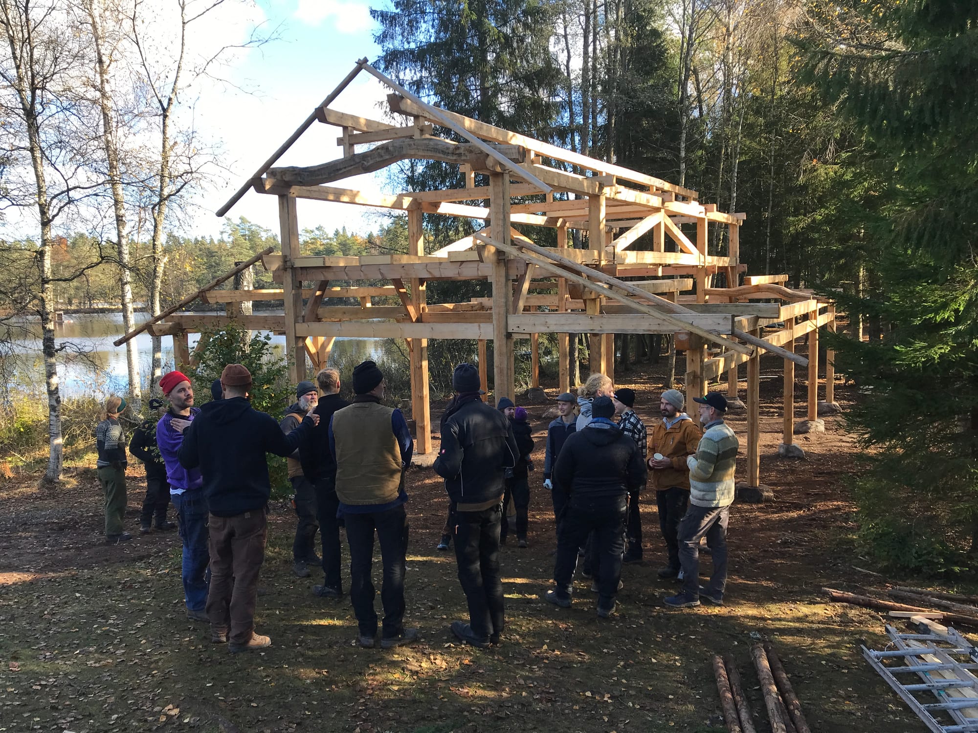 Vi i Stolpverk Norden har under 2025 arrangerat en stor hantverksträff med hantverkare från 15 olika nationaliteter, och vi är mycket stolta över att vi lyckades med att hålla alla 76 hantverkare i gång under två veckors tid utan för mycket stress och samtidigt hinna med att enbart med handverktyg, bygga den 8x15 meter stora stolpverkskonstruktion som numera står på den slutliga platsen i Unnaryd, där vi räknar med att kunna träffas och hantverka tillsammans under många år framöver. En längre berättelse finns längre ner i nyhetsbrevet.