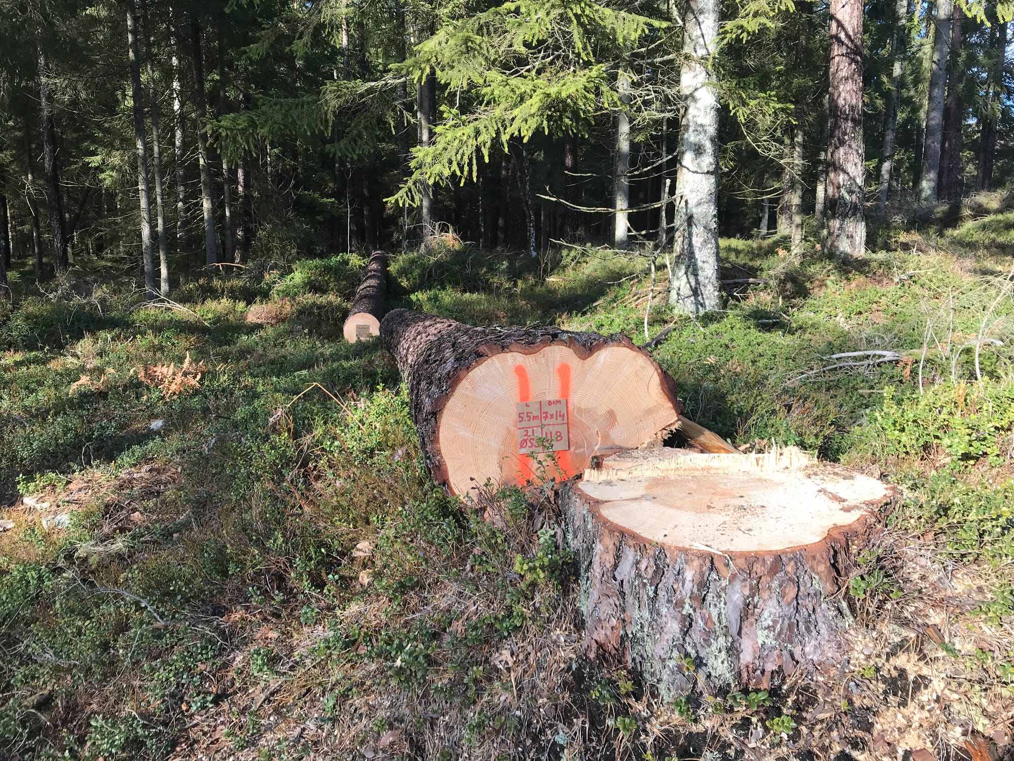 Bilder från huggning och aptering i skogen. Foto Jacob Malling och Ulrik Hjort Lassen